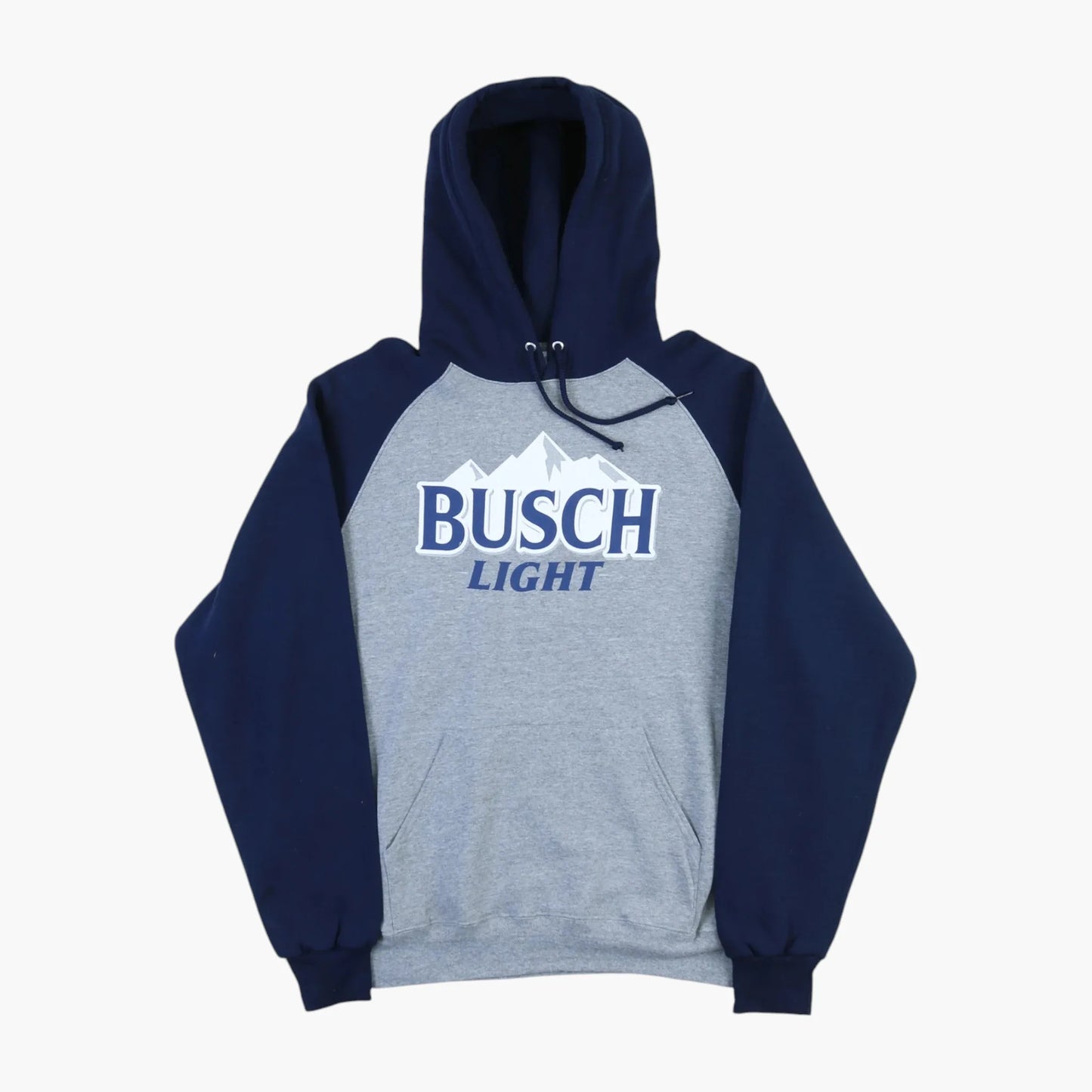 Russell Athletic is an iconic American sportswear brand known for its durable and comfortable basics, particularly hoodies and sweatshirts. This particular hoodie is a collaboration with Busch Light, incorporating a large, retro-inspired chest graphic. Such beer-branded apparel has roots in promotional and collegiate wear from the late 20th century. In contemporary fashion, pieces like this are prized for their nostalgic and vintage appeal. The fleece lining and sturdy cotton blend construction offer both warmth and durability. Today, these hoodies are coveted for casual, relaxed, and streetwear looks, offering both comfort and style.