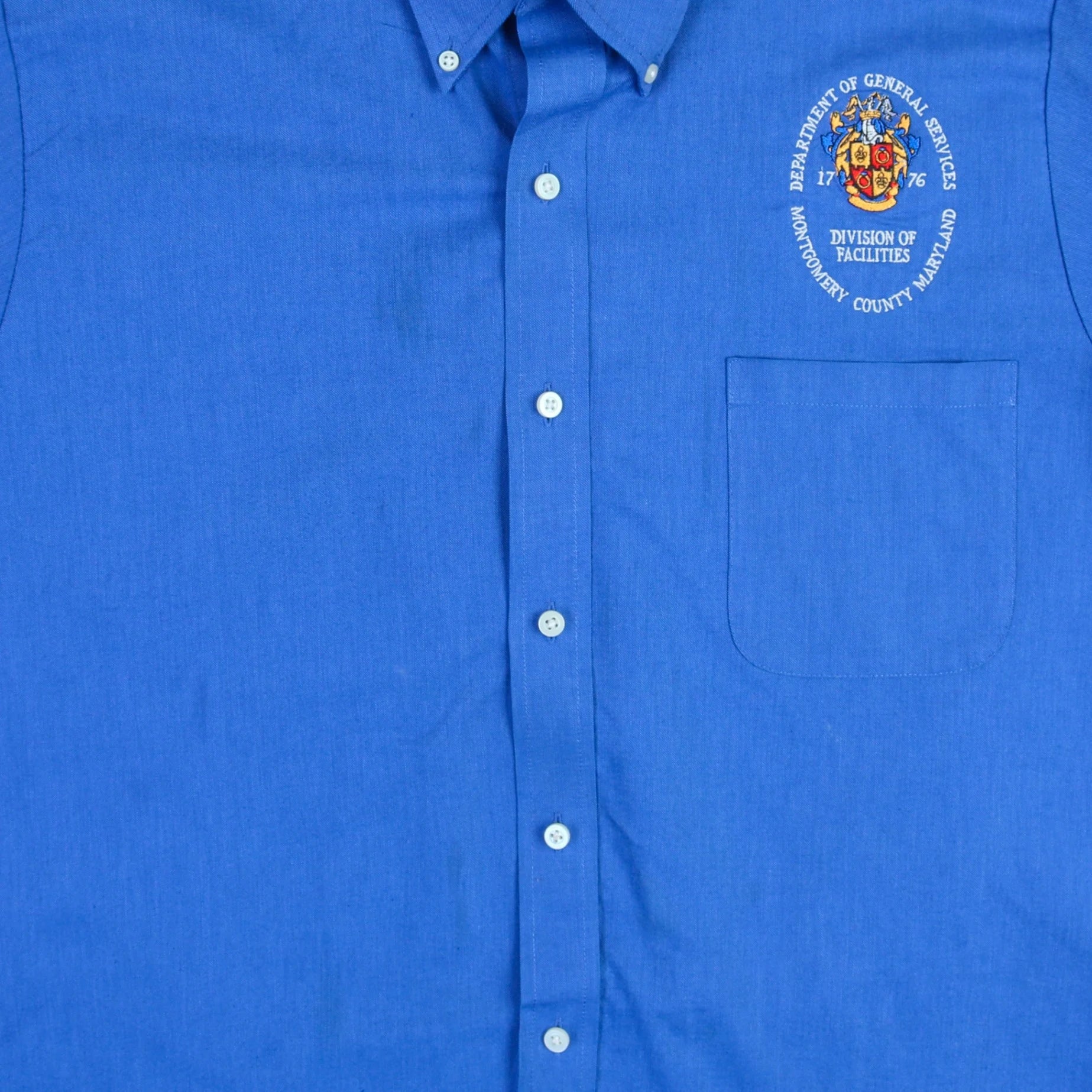 Uniform work shirts like this have traditionally been used across a variety of industries for their functionality and durability. Made by brands like Cintas, these shirts are commonly embroidered with logos and designs representing affiliations or departments. This shirt specifically showcases department insignia, connecting with its heritage of workplace identity. Today, vintage workwear is appreciated not only for performance but also as fashion statements within casual and streetwear styles. Collectors often seek them for their historical narratives and distinct prints. This piece is equally practical and fashionable, aligning with the ongoing workwear trend.