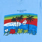 This vintage t-shirt, emblematic of beachside nostalgia, is a representation of vacation and leisure styling popular in the 70s and 80s. Fort Lauderdale's sunny landscapes have inspired countless designs in resort and casual wear during these decades. This specific design, blending picturesque nature prints and minimal lettering, taps directly into the decorative textile trends of that era. Its durable cotton blend ensures longevity while maintaining comfort. Today, such pieces stand as nostalgic fashion statements, embodying both individual and cultural memories. The allure of tropical scenes continues to inspire modern resort wear and casual design markets.