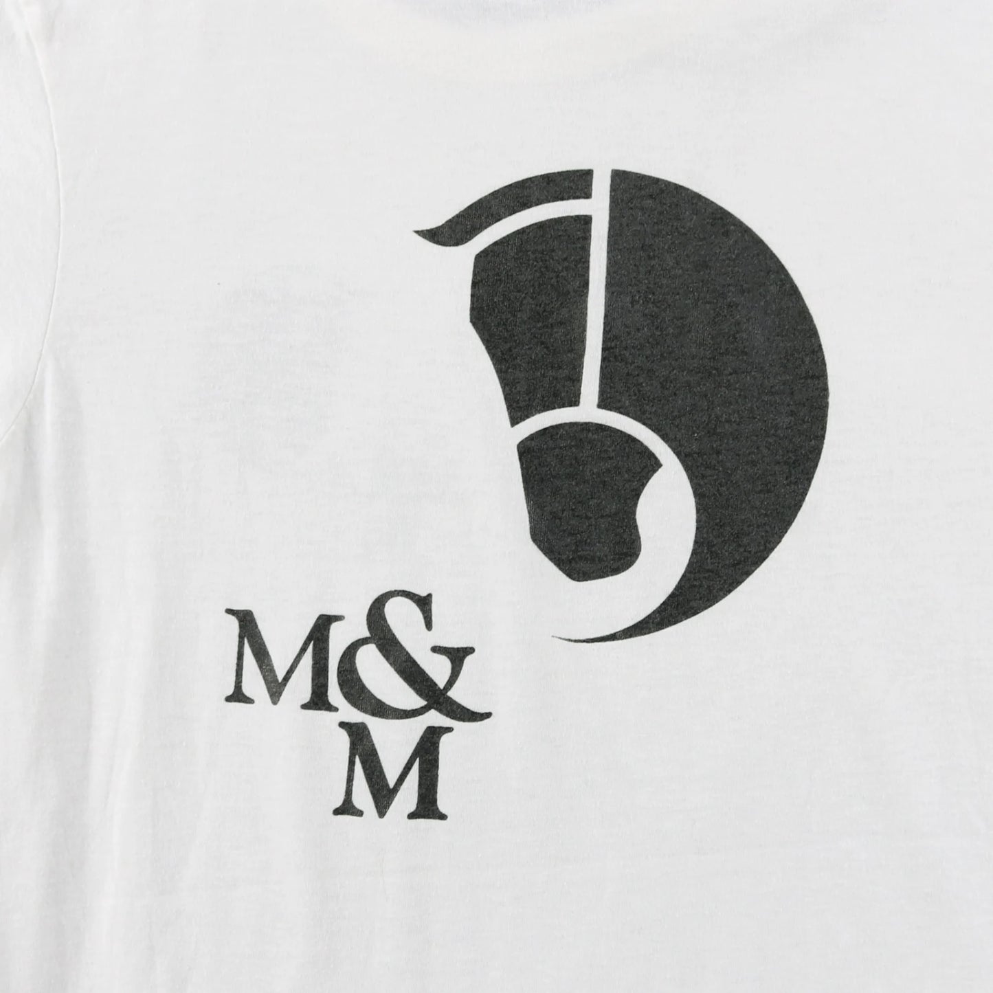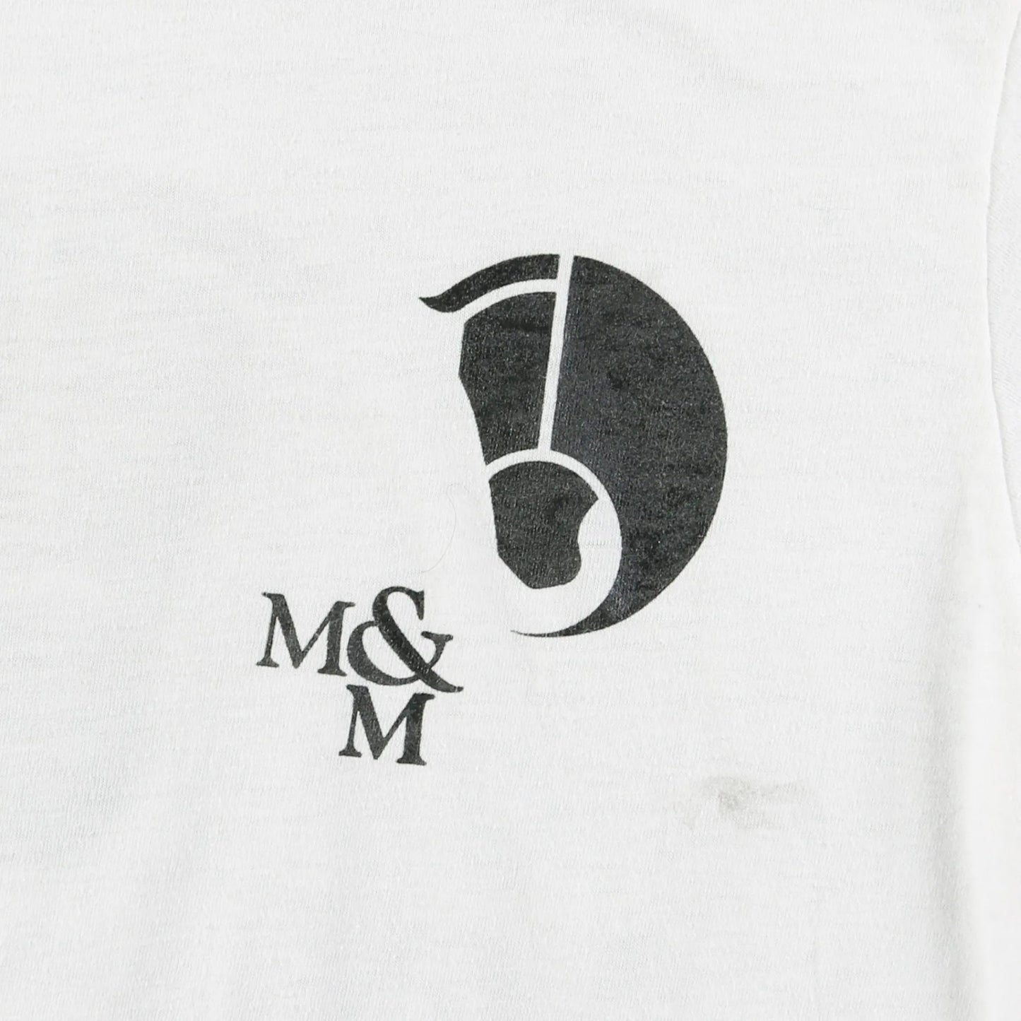 Vintage T-shirt in White. White cotton t-shirt with iconic black horse silhouette artwork and 'M & M' text on front, accompanied by 'stables/écuries' text on the sleeve.