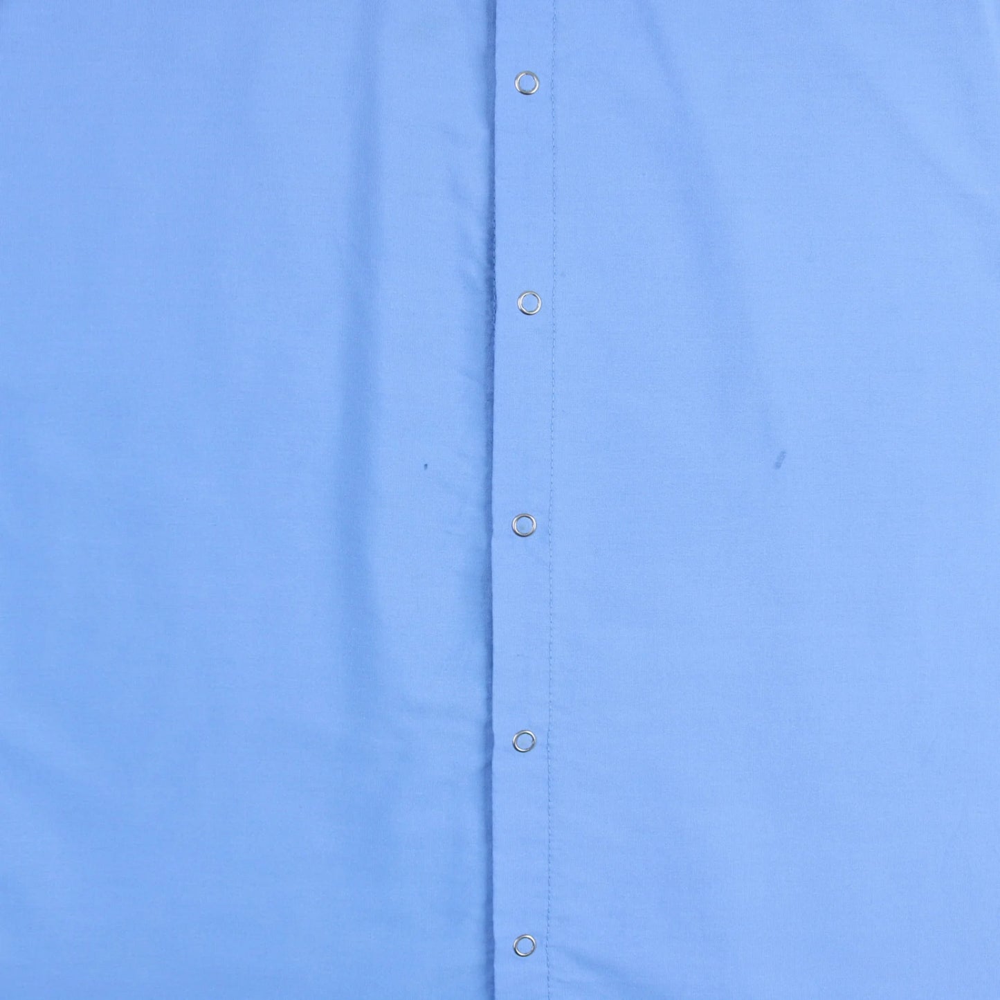 Vintage Garage Shirt Shirt in Blue. Solid light blue color, snap buttons, short-sleeved design.