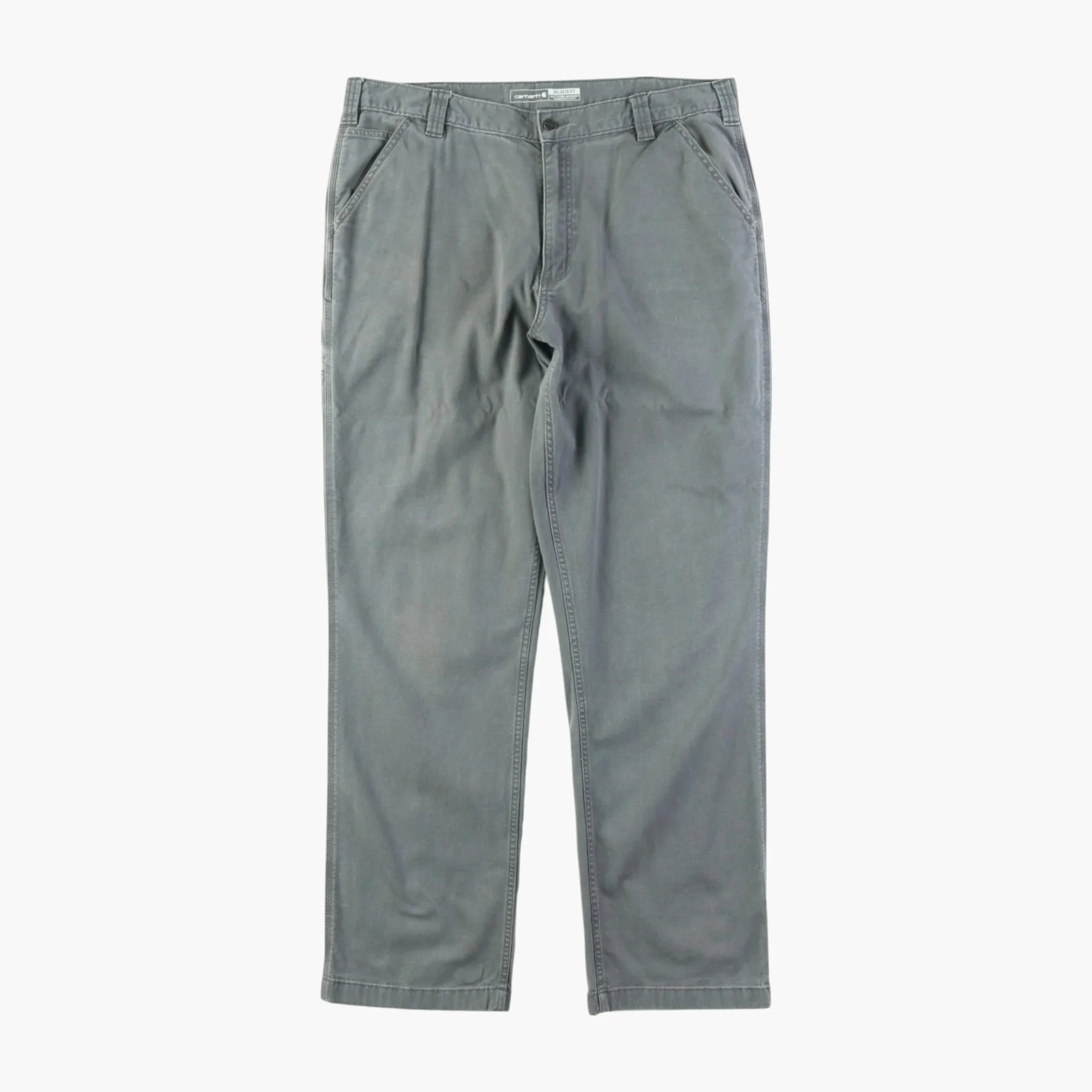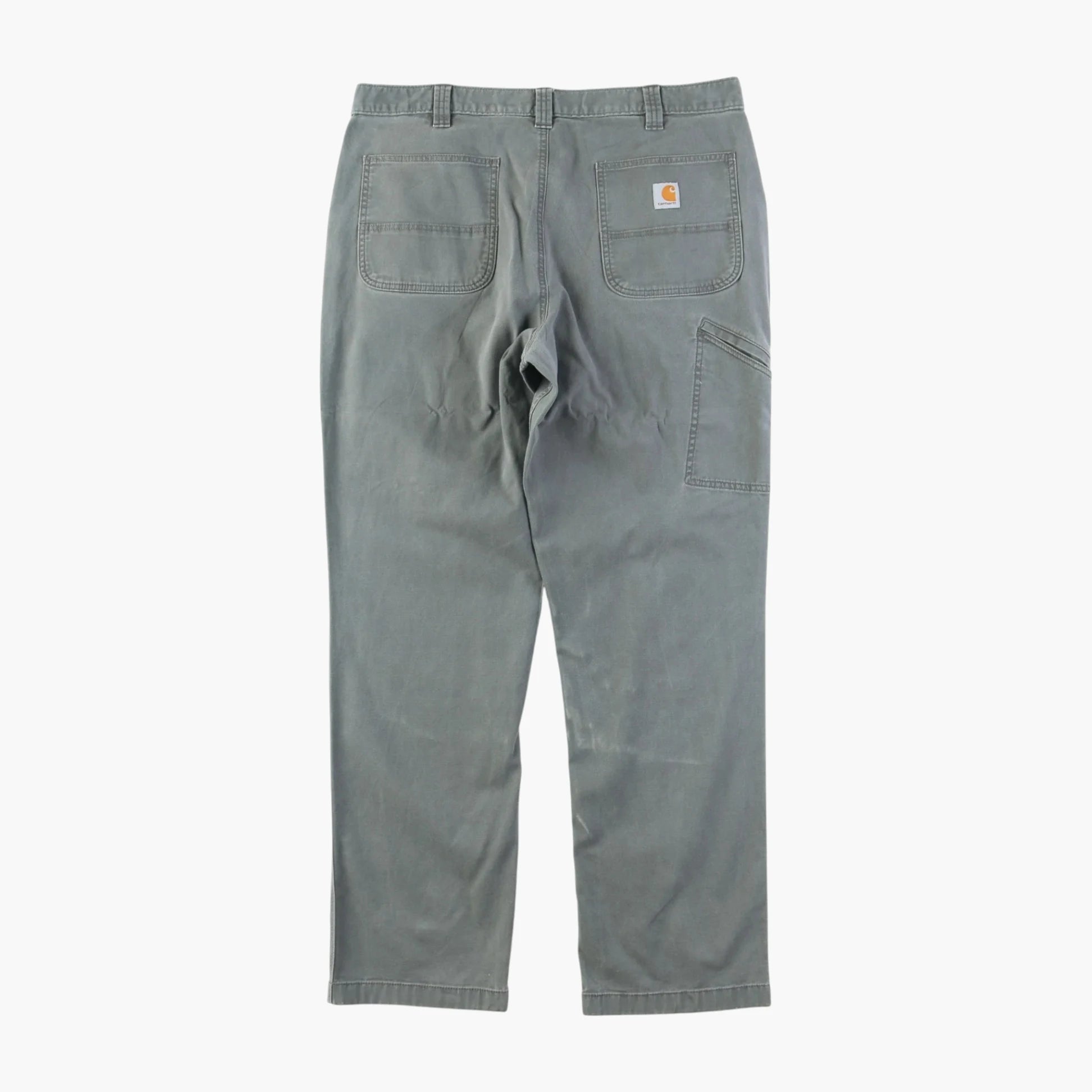 Vintage Carhartt Pants in Gray. Straight-leg cut, utility pockets, soft durable fabric, Carhartt logo patch.