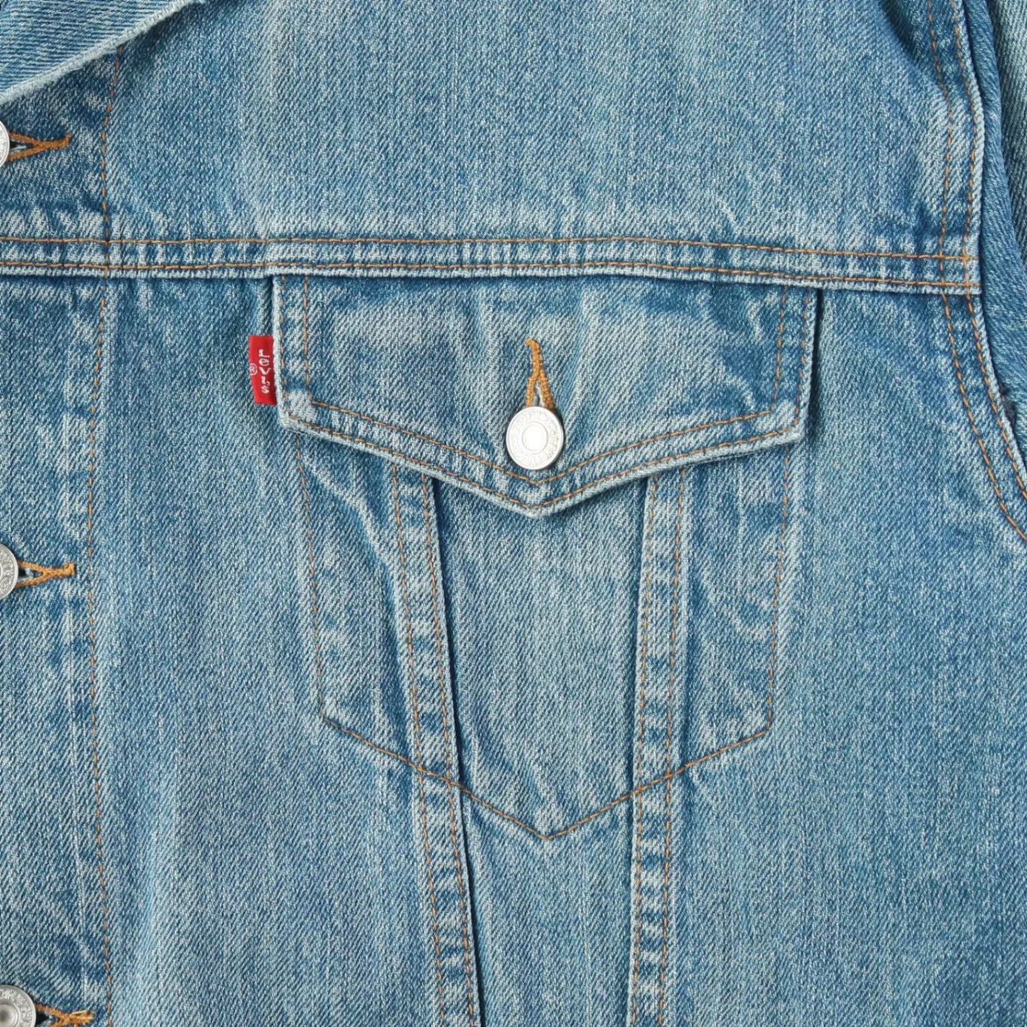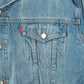 Vintage Levi's Jacket in Blue. This vintage denim jacket by Levi's showcases light blue denim with a slightly worn texture, typical of its era.