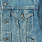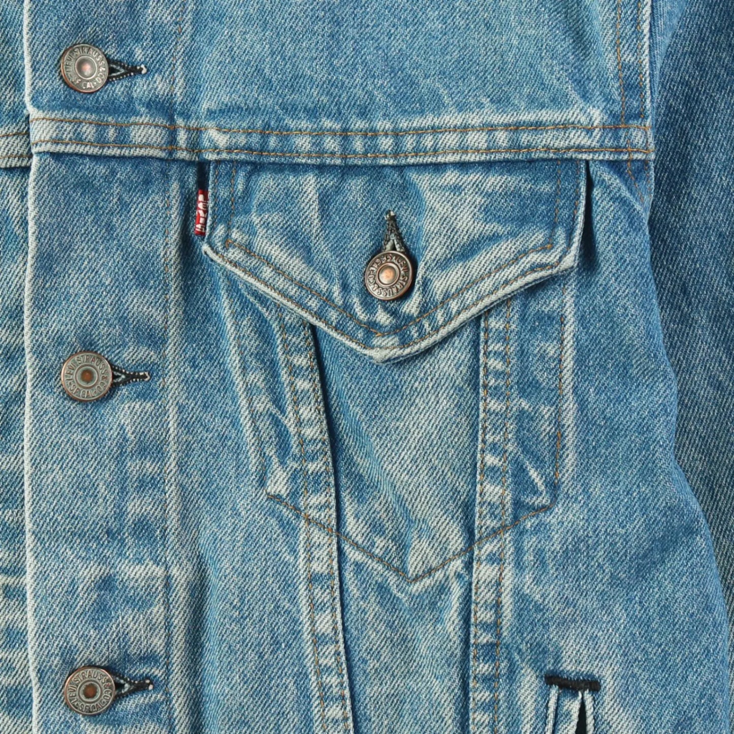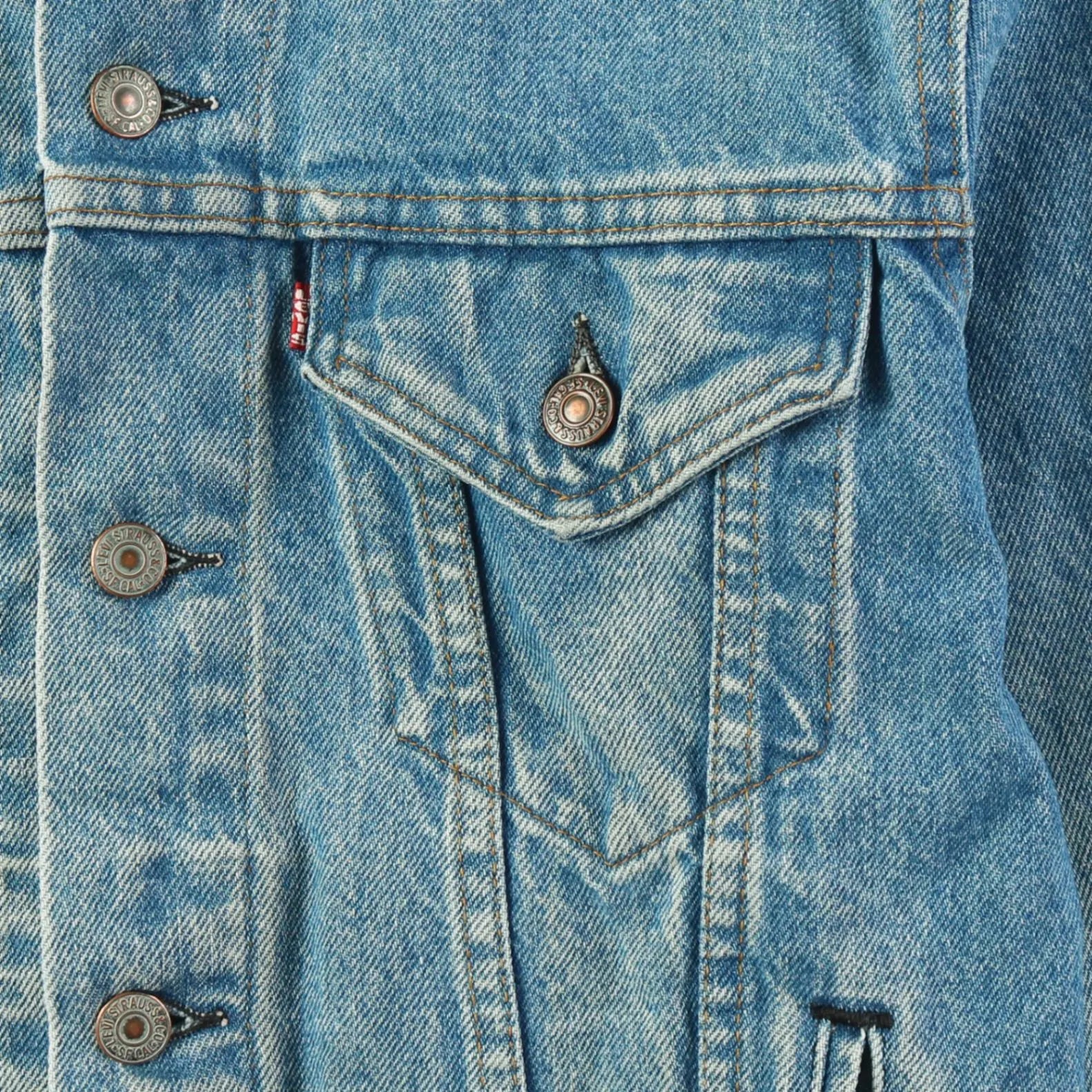 Vintage Levi's Jacket in Blue. Features include a stonewashed finish, branded metallic buttons, and characteristic chest flap pockets.