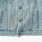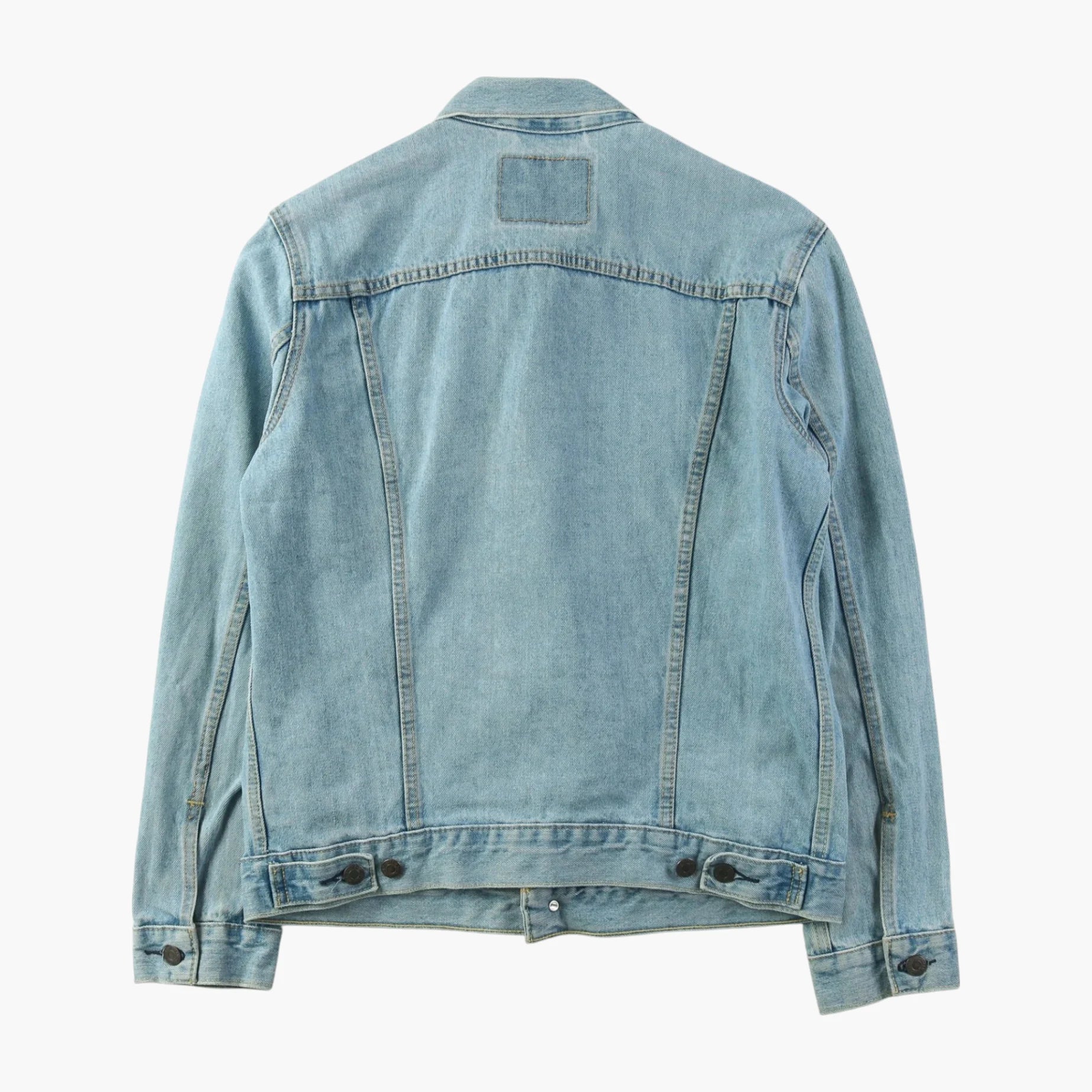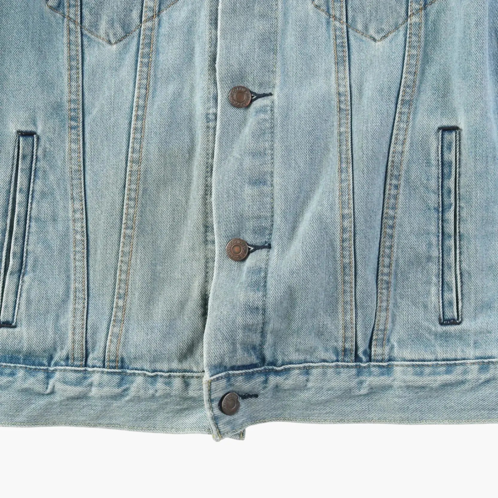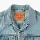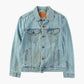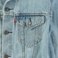 Vintage Levi's Jacket in Blue. This denim jacket showcases signature Levi's branding, button closures, and front chest pockets. Its light blue hue indicates a vintage-inspired wash, and the fabric appears to be durable for lasting wear.