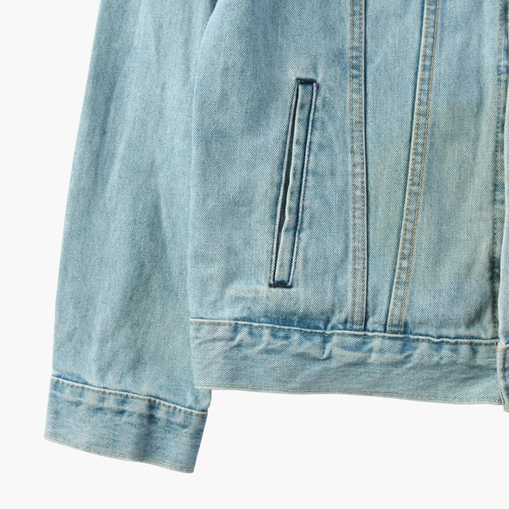 Denim jackets by Levi's are iconic pieces in American fashion. Levi's, as a brand, originated the concept of denim wear while continuously evolving styles to match cultural trends. This light blue jacket represents their enduring commitment to quality and style. Modern enthusiasts appreciate its versatility and vintage appeal. It remains a staple and cherished piece in wardrobes today.