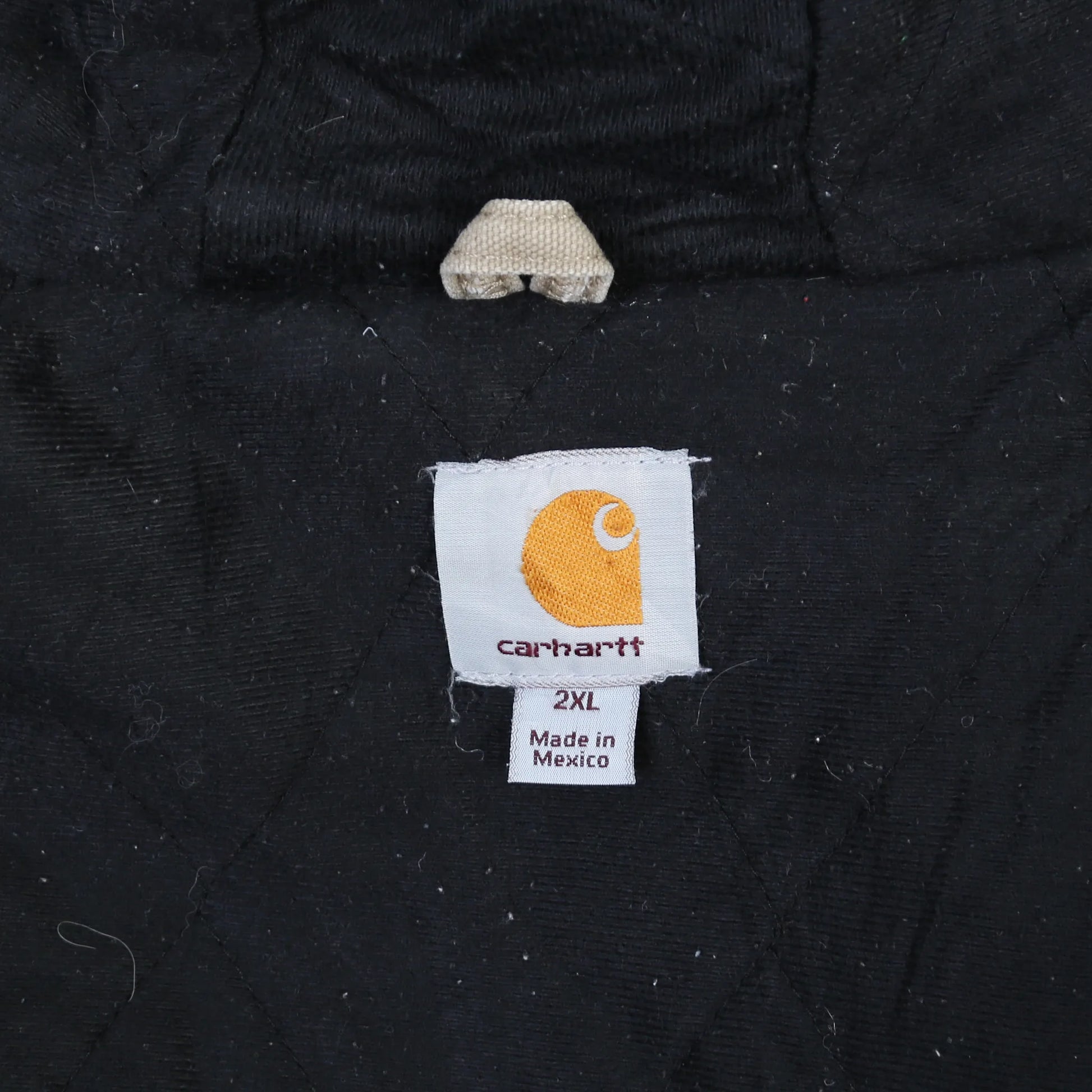Carhartt is renowned for its rugged workwear, especially its durable jackets like this one. The iconic hooded jacket has been a staple for workers since its introduction, prized for its resilience on job sites. Over the years, Carhartt's classic pieces have crossed over into streetwear, finding a second life among fashion enthusiasts. Today, worn Carhartt jackets are symbols of authenticity and utilitarian style. Many admire the unique patina that each vintage piece develops, a testament to both craftsmanship and real-world use. The Carhartt patch and unmistakable silhouette remain as popular now as ever in both fashion and function.