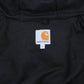 Vintage Carhartt Hooded Jacket in Black. Zip-front hooded jacket with ribbed cuffs and waistband, front hand-warmer pockets, Carhartt logo patch, and embroidered Smithfield graphic on chest. Heavyweight canvas/duck fabric keeps out the cold; typical workwear durability.