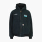 Carhartt is renowned for its durable workwear, often chosen by laborers and fashion enthusiasts alike. This black hooded work jacket embodies the brand's iconic construction with its tough canvas shell and practical features. The company-specific embroidery nods to its workwear roots, while the Carhartt logo is recognized worldwide. In recent years, pieces like this have become staples in streetwear, prized for both functionality and style. Many vintage Carhartt jackets are sought after for their authentic worn-in character. Today, this jacket bridges the gap between utility and modern fashion trends.