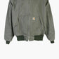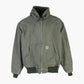 Vintage Carhartt Hooded Jacket in Green. Constructed with durable materials, this green Carhartt jacket features ribbed elements and an insulated interior.