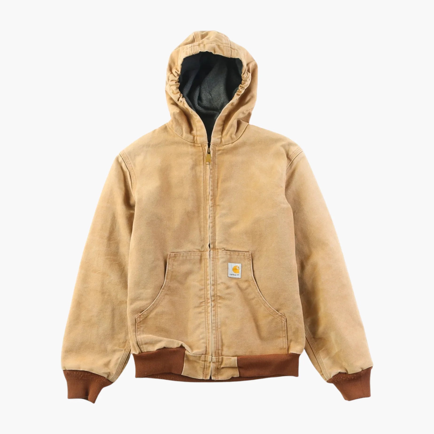 Carhartt, a brand established in 1889, is renowned for its durable workwear. This hooded jacket exemplifies its commitment to functionality and style, providing warmth and resilience. Such jackets are popular among outdoor workers and urban fashion enthusiasts alike. The combination of rugged materials and timeless design makes it versatile for various activities. The distinctive Carhartt logo signifies quality and heritage. Today, vintage Carhartt pieces are highly valued for their authenticity and endurance.