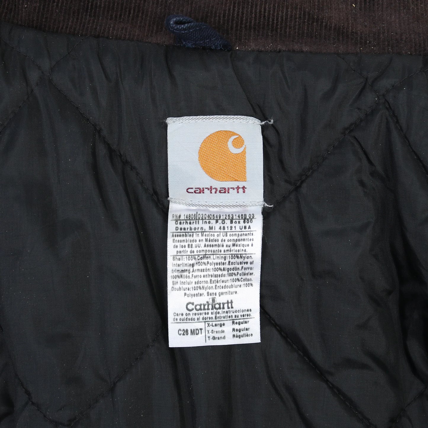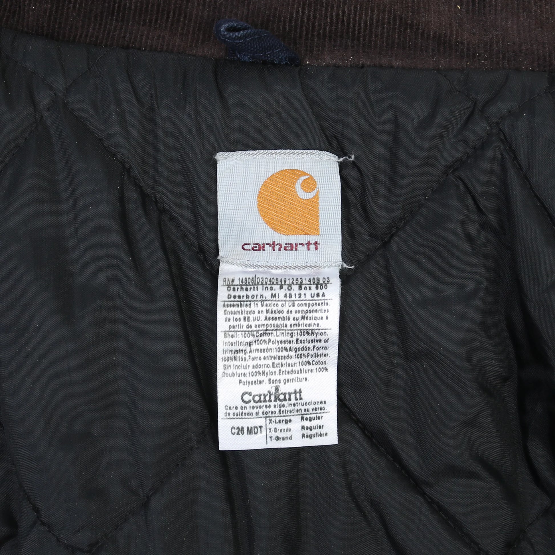 Carhartt is an iconic American workwear brand, established in 1889 and celebrated for its rugged construction and reliable fabrics. The brand's chore jackets, such as this one, became staples of both industrial work and streetwear cultures. This piece features custom Thalle embroidery, referencing a construction legacy and adding distinctive character. Carhartt jackets are especially popular in vintage fashion for their durability and signature detailing. Today, they're worn by a wide audience, from workers to style enthusiasts, blending workwear practicality with urban cool. The corduroy collar and logo patch further cement its status as a classic staple from Carhartt's lineup.