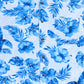 Vintage George Shirt in blue. Lightweight fabric with blue floral prints on a white base, short sleeves, and button-down design