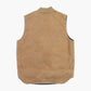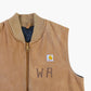 Vintage Carhartt Vest in Hamilton Brown. A brown canvas vest by Carhartt with visible wear, embroidered 'WR' initials, quilted lining, and robust construction.