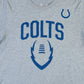 Vintage Vintage T-Shirts T-shirt in grey. Heather gray Dri-Fit t-shirt with blue "COLTS" lettering, stylized football graphic, horseshoe logo on chest, Nike Swoosh on sleeve, moisture-wicking athletic fabric.