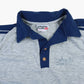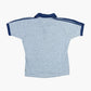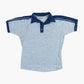 Vintage Polo Shirt in Grey. Heather gray fabric, navy accents, embroidered chest text, button-down placket.