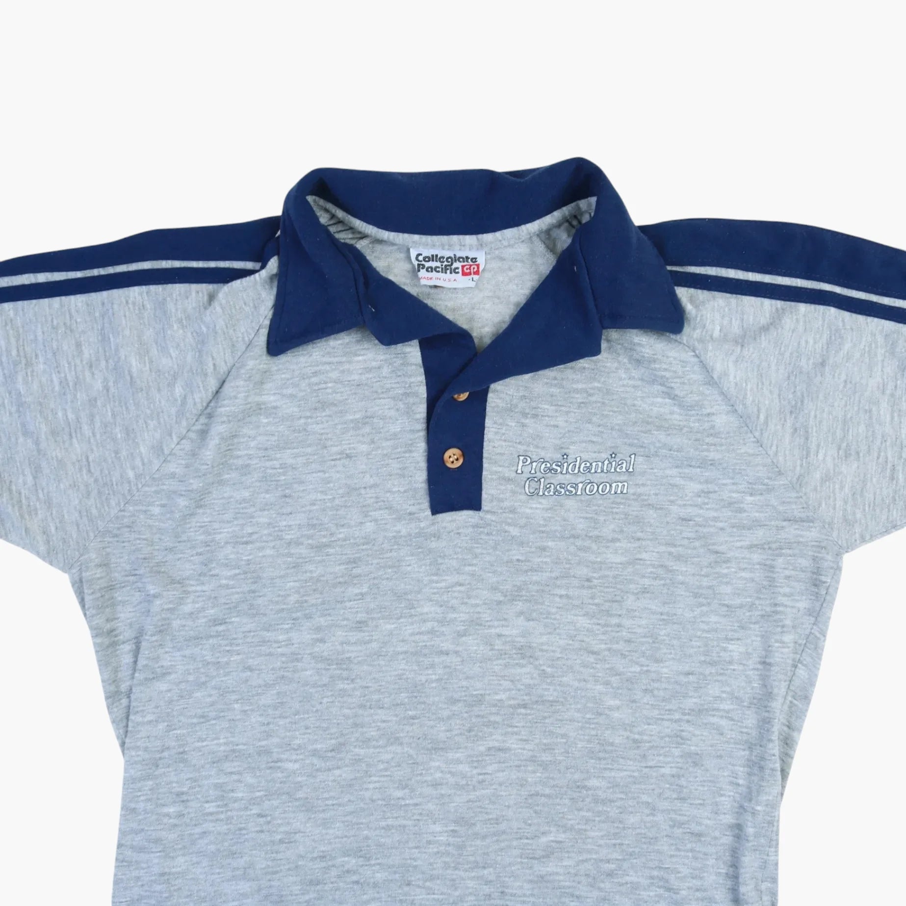 Collegiate Pacific is well-known for creating athletic gear and team uniforms starting in the mid-20th century. Their clothing often carried a sporty aesthetic combined with utilitarian design. This polo shirt commemorates an academic initiative, marrying institutional pride with casual style. The brand's American-made legacy designs remain sought after for their historic and vintage appeal. Today, pieces like this are appreciated for their durability and timeless look. Collectors and vintage fashion enthusiasts highly value original Collegiate Pacific items.
