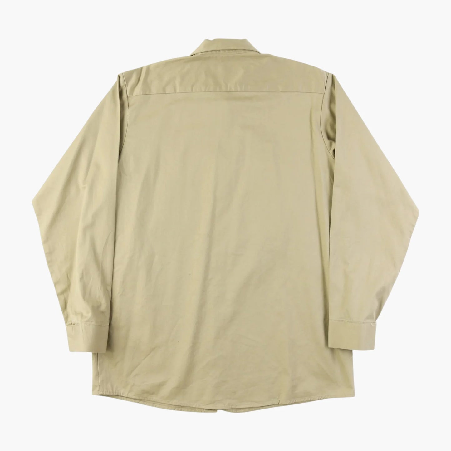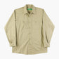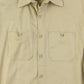 Vintage Garage Shirt Shirt in Beige. This beige button-up shirt features dual flap-front pockets and a traditional straight collar, ideal for casual or workwear.