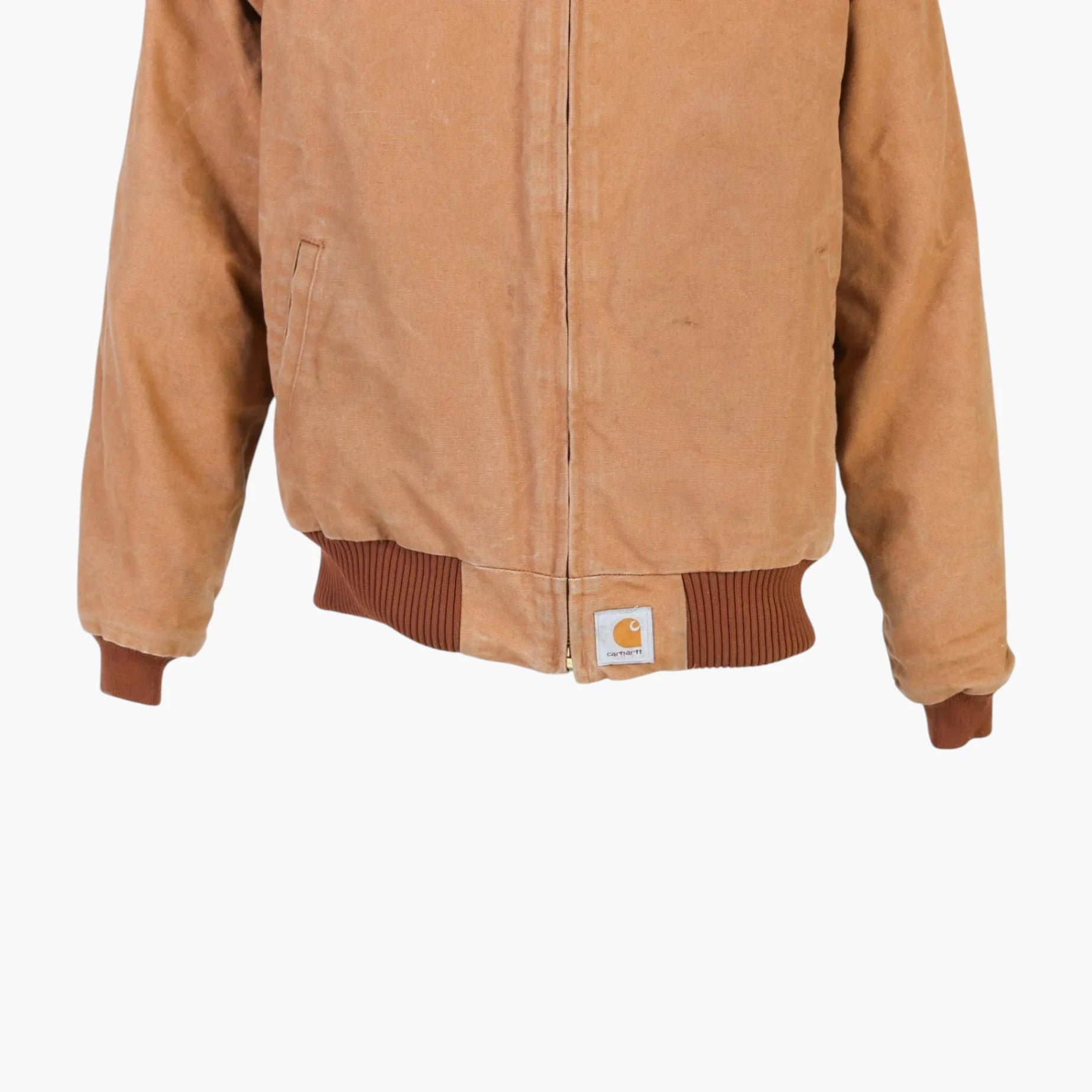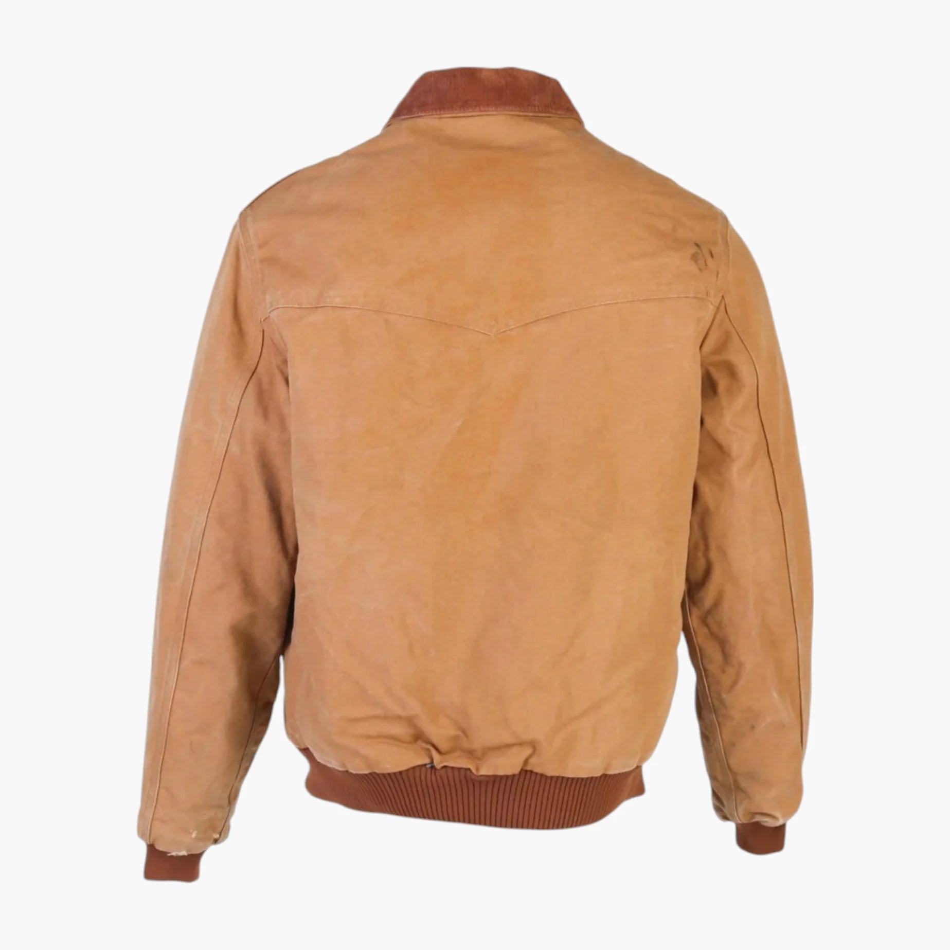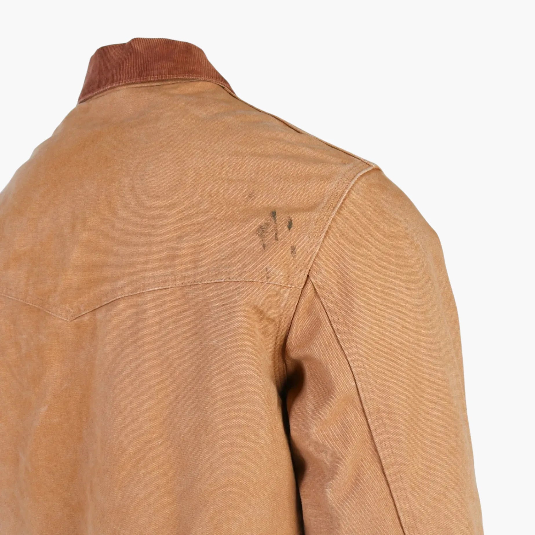 Vintage Carhartt Jacket in Hamilton Brown. Rugged design with a corduroy collar, embroidered logo on chest, ribbed hem and cuffs, durable fabric construction.