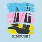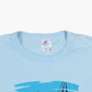 Vintage Vintage T-Shirts T-shirt in Blue. Light blue color, sailboat print with pink and yellow accents, 'Rimouski' text, vintage style.