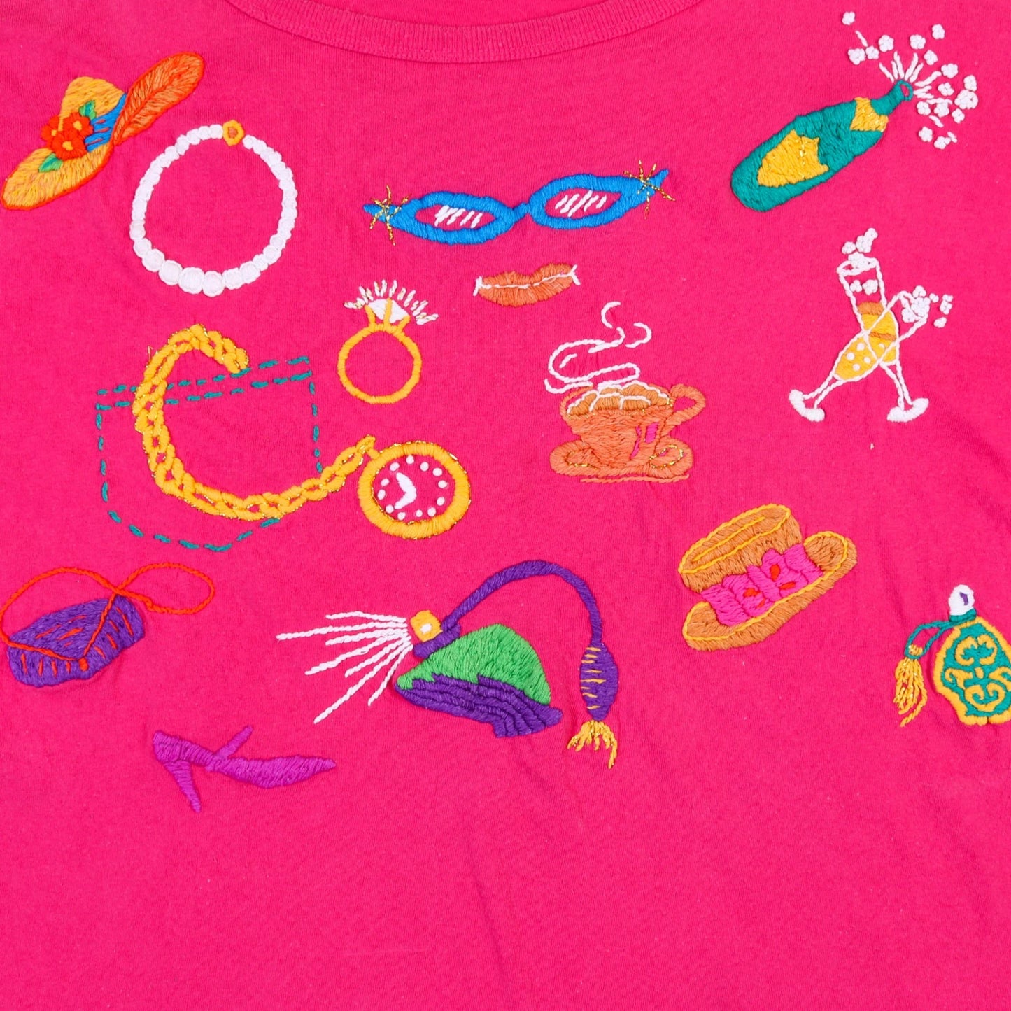 Vintage Vintage T-Shirts T-shirt in Pink. Hand-embroidered designs, 100% cotton, Made in Guatemala, vibrant pink color.