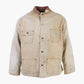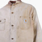 Vintage Carhartt Jacket in Beige. Vintage work jacket with distressed edges, Carhartt-branded patch pocket, corduroy collar, and durable cotton construction.