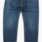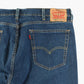 Vintage Levi's Jeans in Blue. Indigo blue, high-quality denim jeans with white contrast stitching, a red Levi's tag, and a durable leather patch on the back waistband.