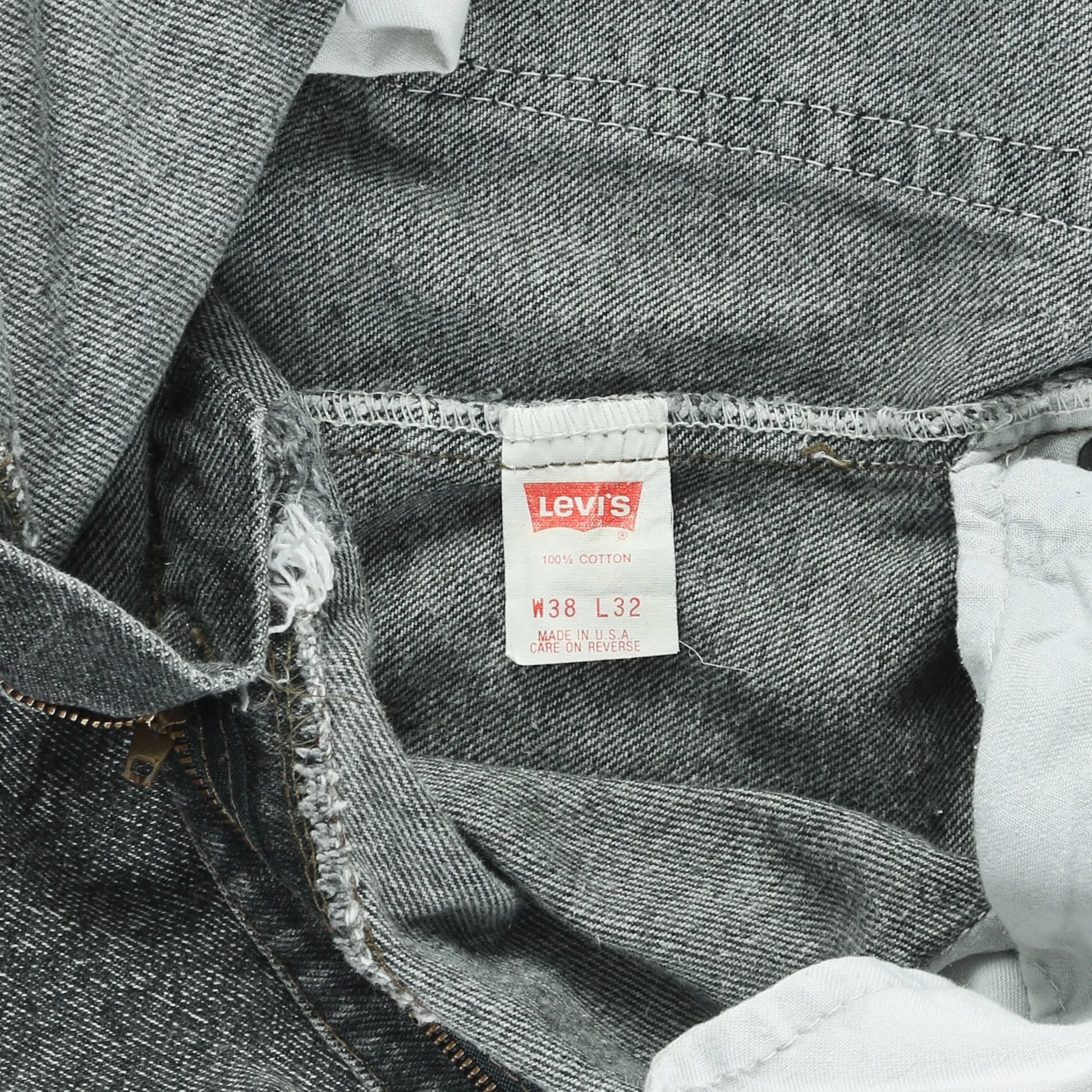 Vintage Levi's Jeans in Gray. These gray jeans feature a stonewashed texture, five-pocket design, Levi's signature red tab, and a durable button-down closure.