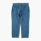 Vintage Levi's Jeans in Blue. Made from premium denim, these jeans showcase contrasting stitching, a zip fly with button closure, and a branded back leather patch for authenticity.