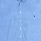 Vintage Ralph Lauren Shirt in Blue Check. Blue checkered cotton fabric with embroidered Ralph Lauren logo