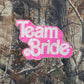 Camo print apparel has long roots in military and hunting wear, praised for its versatility and ruggedness. This shirt features a playful twist with 'Team Bride' text in eye-catching pink, merging rustic and celebratory aesthetics. Such designs represent a blend of tradition and modern thematic elements. Outdoor and adventure brands often incorporate unique spins to attract fashion-conscious consumers. Today, camo prints are a staple in mainstream and niche fashion sectors alike. This shirt exemplifies blending functionality with thematic humor.