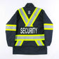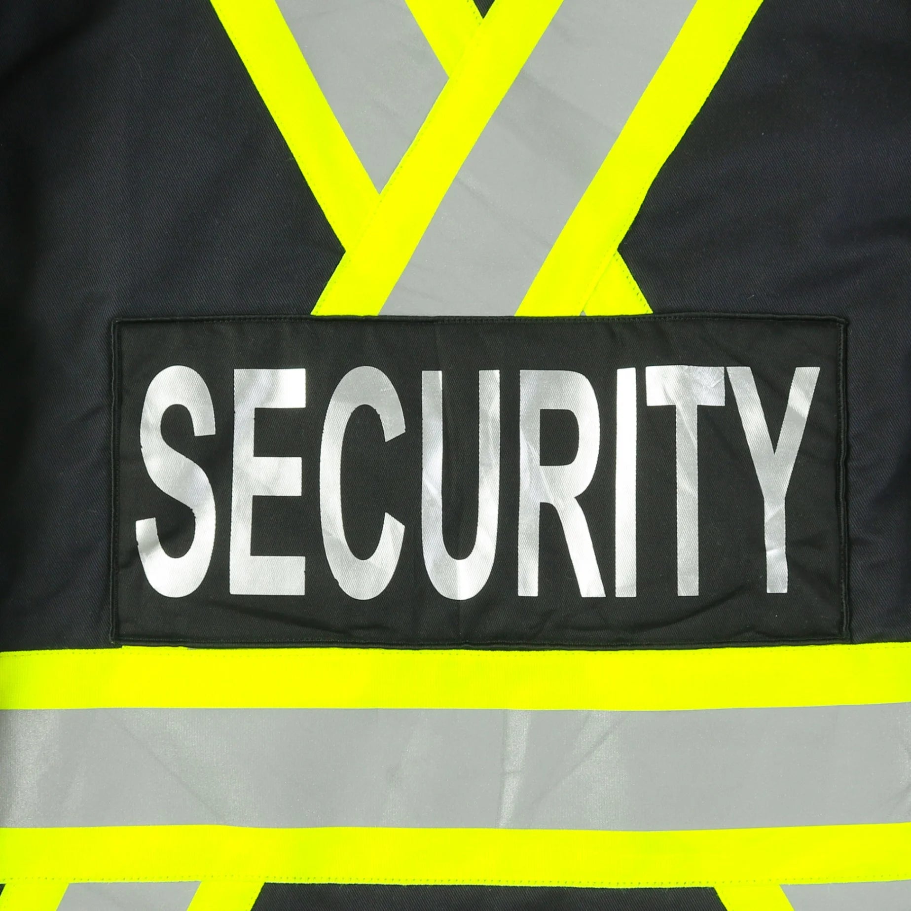Hi-vis jackets have historically been designed to enhance visibility and safety in hazardous environments, especially for workers in security, construction, or similar fields. This jacket incorporates reflective strips and neon details, which became popular in safety garments in the mid-20th century. Today, such designs continue to be essential for workplace safety as well as utility wear fashion. The integration of embroidered patches and functional designs caters to both style and occupational requirements. With its modern branding and high-quality material, it holds a practical and stylistic appeal in today's market.