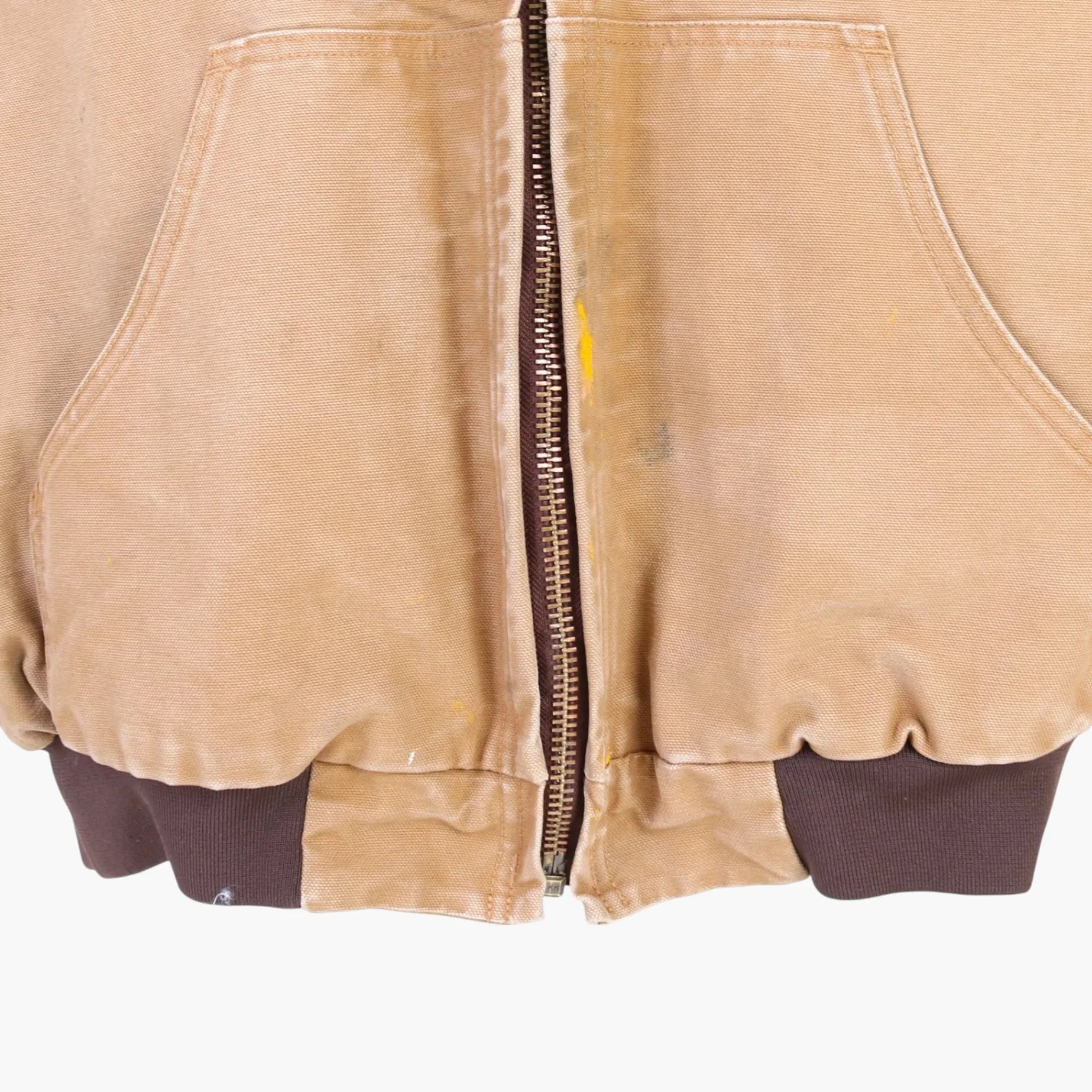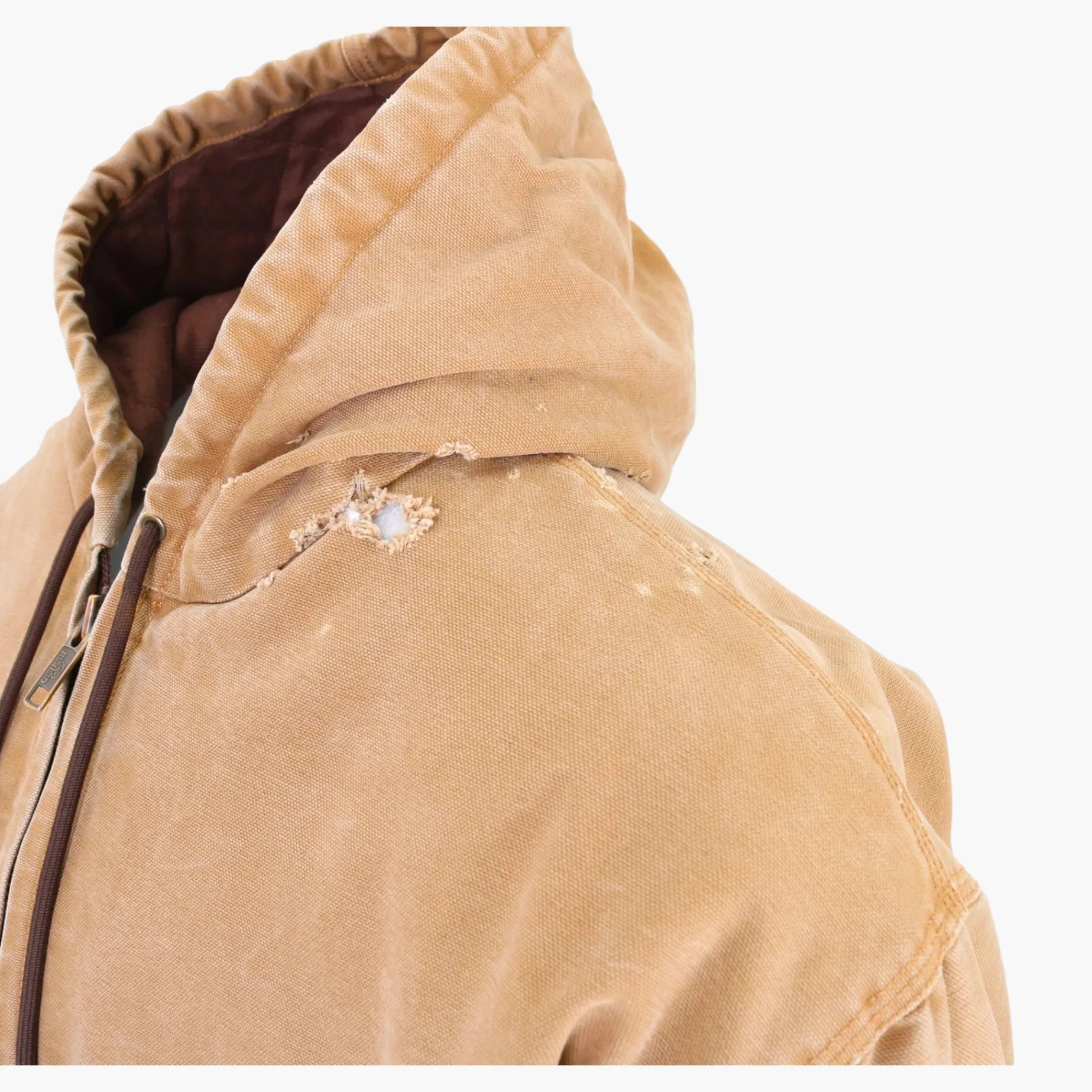 Vintage Redhead Jacket in Brown. Hooded jacket with ribbed cuffs and hem, front zipper closure, and a rugged build.